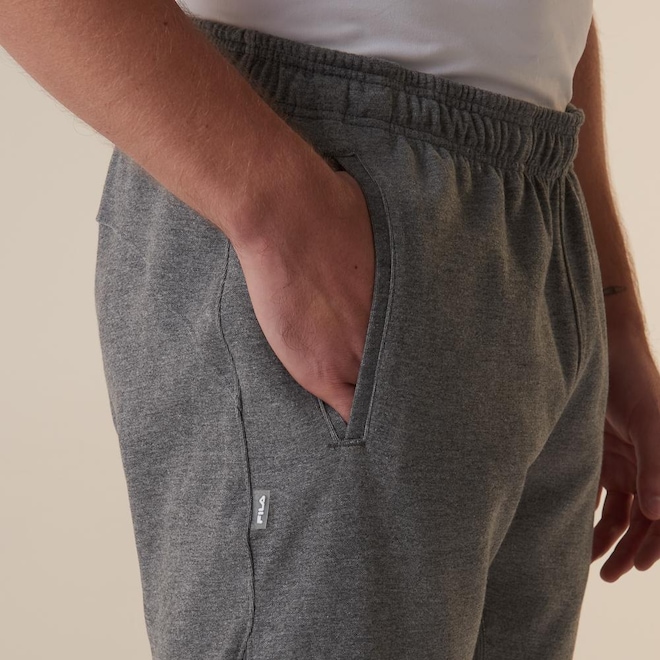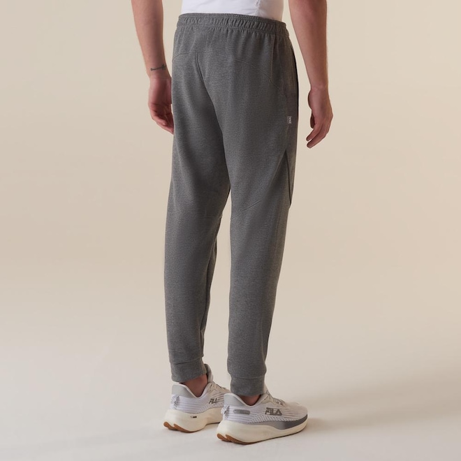 Calça masculina confeccionada em malha mista de poliéster com algodão. Modelagem jogger com cós em elástico tombado de 4 cm. Produto ecológico com certificado Oeko-Tex, que testifica o não uso de químicos nocivos na sua fabricação. Possui cordão com amarração interna no cós, bolsos laterais embutidos, gusset entrepernas com costuras Flat Seam, gancho com costura rebatida, vivos interrompidos no recorte anatômico da coxa, pence anatômica e rebatida na altura do joelho.ref: M17LSW