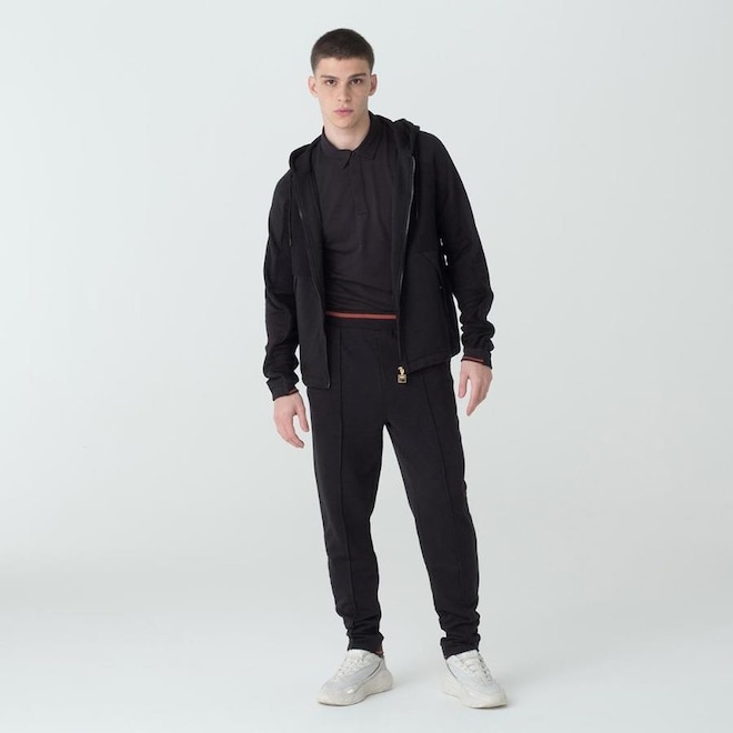 Calça masculina confeccionada em moletom misto de algodão com poliéster. Modelagem regular. Possui cós em retilínea com cordão de ajuste interno e ponteira personalizada, vinco pespontado na parte frontal e traseira, bolsos laterais, barra traseira em retilínea e patch F-Box aplicado próximo ao bolso esquerdo. Comprimento total: 114,5 cm.ref: M0ZVNG