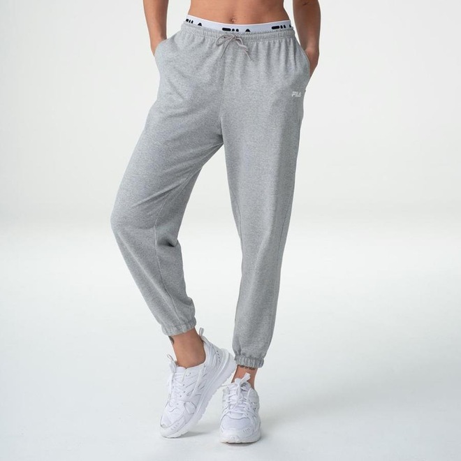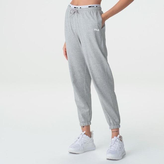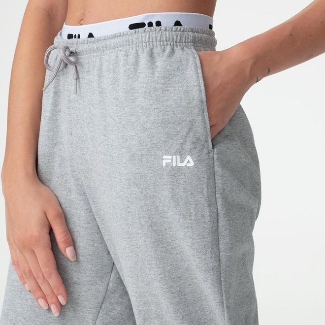 Calça feminina confeccionada em moletinho leve sem felpa. Modelagem comfort tipo jogger, cós tombado com elástico interno e cordão ajustável interno com ponteiras emborrachadas. Possui bolsos laterais, barra tombada com elástico interno e Tape Fila Letter aparente aplicado na parte interna do cós. Aplique Fila Letter em relevo na parte frontal próximo ao bolso esquerdo. Comprimento total 101 cm. CINZA MESCLA,BRANCOref: M0ZVNH