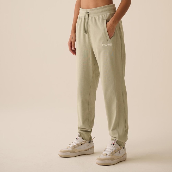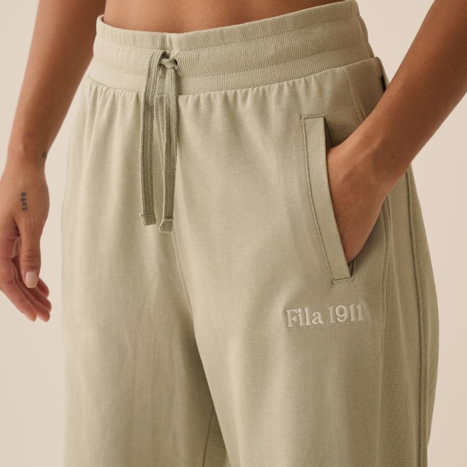 A Calça Feminina FILA Jogger 1911 combina estilo jovem e sustentabilidade. Feita em malha de algodão ecológica, possui modelagem jogger, recortes laterais, cós e punhos em ribana com elástico e cordão. O design minimalista inclui logos monocromáticos e o bordado FILA 1911 na perna esquerda, unindo conforto e sofisticação para o dia a dia.