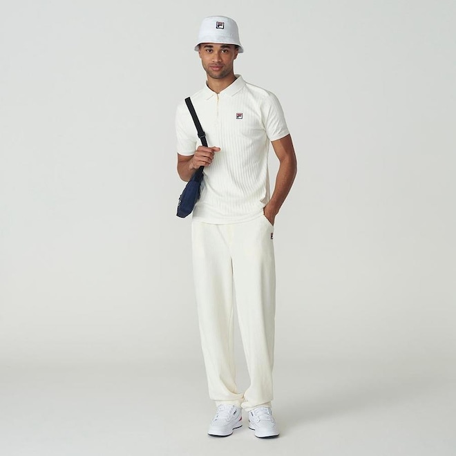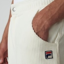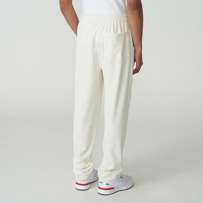 Calça masculina confeccionada em tecido canelado de veludo misto (cotelê) composto por algodão, poliéster e elastano. Modelagem regular. Possui cós com elástico e ajuste de cordão interno, abertura frontal com botão de pressão personalizado, braguilha com zíper, bolsos laterais, bolso traseiro e patch F-Box aplicado próximo ao bolso esquerdo. Comprimento total: 114,5 cm. EGRETref: M0ZVNZ