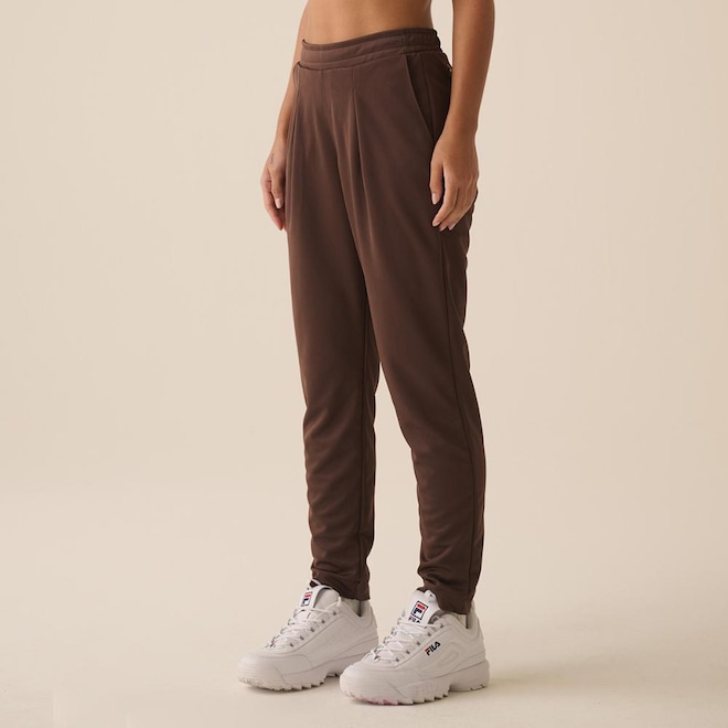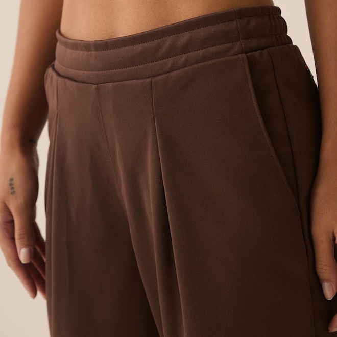 A Calça Feminina em meia malha de poliéster reciclado combina estilo de alfaiataria com sustentabilidade. Com modelagem regular afunilada, cintura alta e cós de 4,5 cm, oferece conforto e elegância. Possui tecnologia FLOW para secagem rápida e respirabilidade, cordão de ajuste interno, bolsos faca laterais, pregas frontais e traseiras, bolsos falsos estilo alfaiataria e patch F-Box bordado. Comprimento total: 98 cm.ref: M17LT8