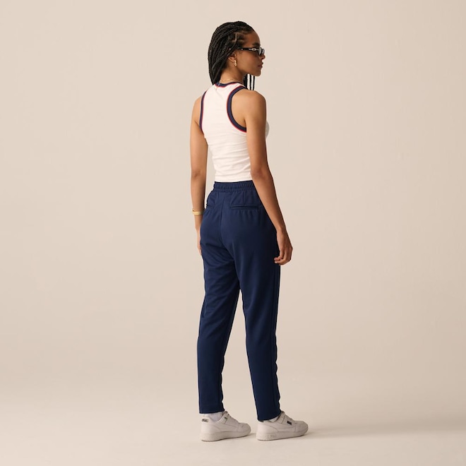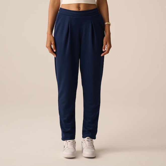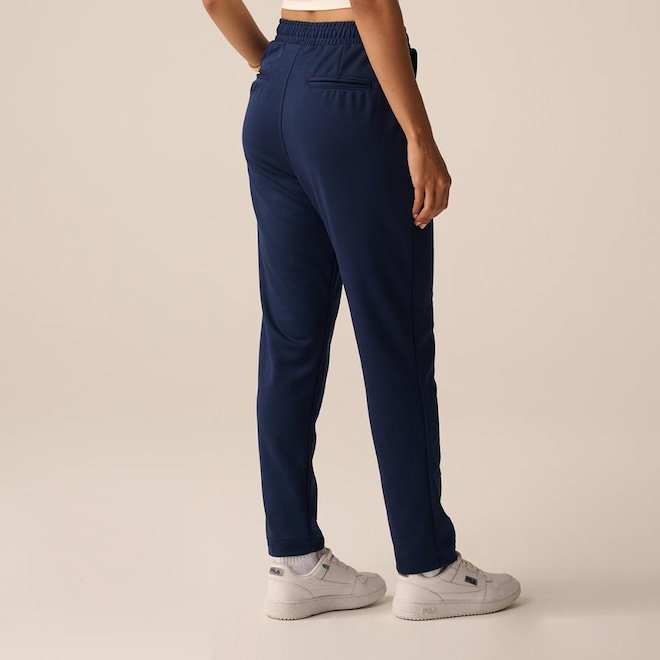 A Calça Feminina em meia malha de poliéster reciclado combina estilo de alfaiataria com sustentabilidade. Com modelagem regular afunilada, cintura alta e cós de 4,5 cm, oferece conforto e elegância. Possui tecnologia FLOW para secagem rápida e respirabilidade, cordão de ajuste interno, bolsos faca laterais, pregas frontais e traseiras, bolsos falsos estilo alfaiataria e patch F-Box bordado. Comprimento total: 98 cm.ref: M17MEC