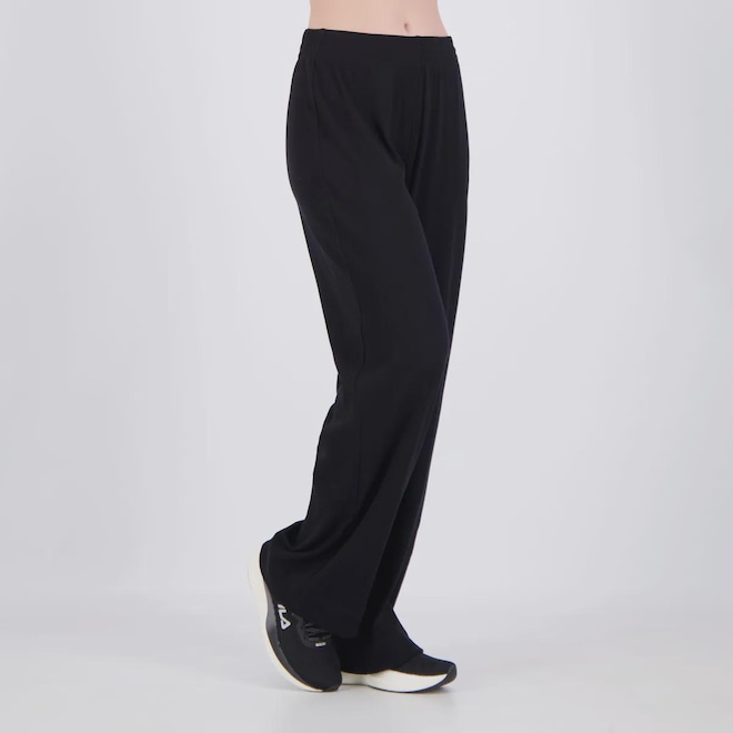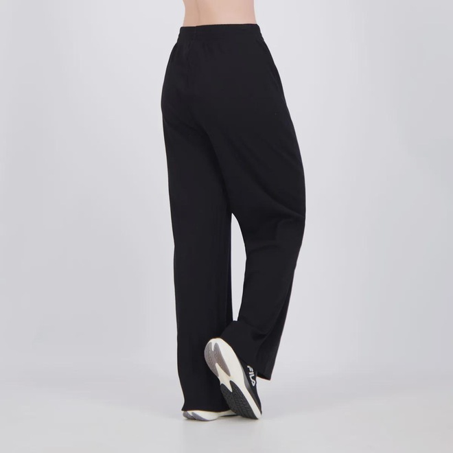 Modelagem wide A modelagem wide é caracterizada por peças com caimento mais solto e pernas amplas, proporcionando conforto, liberdade de movimento e um visual moderno. Muito usada em calças, ela valoriza diferentes tipos de corpo e traz um toque urbano ao look. Composição: 96% Viscose e 04% Elastano Ajuste: Elástico reforçado no cós Cor predominante: Preta Origem: Nacional Gênero: Feminino Logo: Bordada Bolsos: Não Forro: Não Dimensões aproximadas (A x L): EP: 99 x 31 cm PP: 101 x 33 cm P: 103 x 35 cm M: 105 x 37 cm G: 107 x 39 cm GG: 109 x 41 cm EG: 111 x 43 cm EEG: 113 x 45 cm EEEG: 115 x 47 cm 7G: 117 x 49 cm EEEEG: 119 x 51 cm