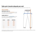 Possui tecido com trama exclusiva na região dos joelhos que proporciona maior durabilidade.