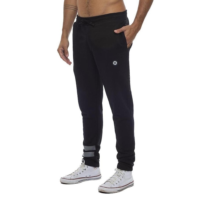 Calça de moletom Hurley com tecido felpado, cós no cordão, recortes na lateral, heat transfer layers na lateral, bolsos laterais e bolso traseiro com etiqueta na lateral.