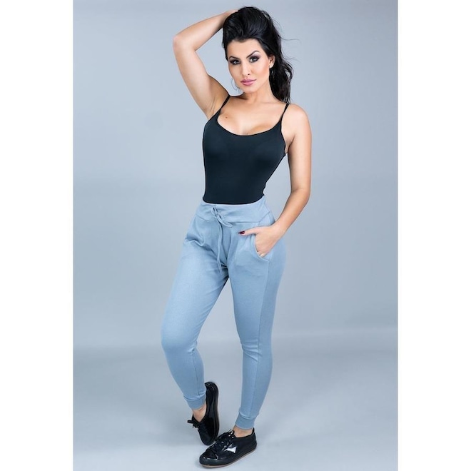 Calça de Moletom MVB Modas Cintura Alta Ribana - Feminina