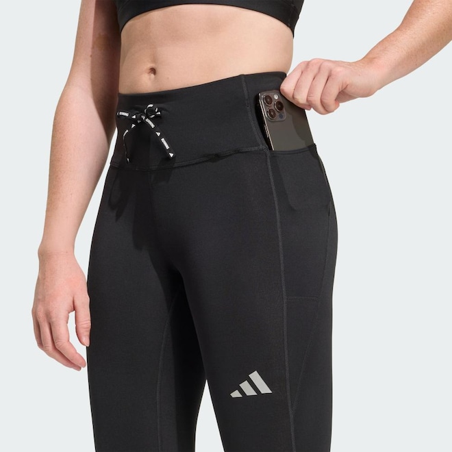 Um logotipo refletivo da Performance dá um toque de estilo, tornando essas leggings um item essencial no seu guarda-roupa de corrida.