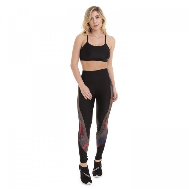 Legging com recortes e misturas de tecidos estampados e telas que dão movimento ao modelo.ref: M093N3