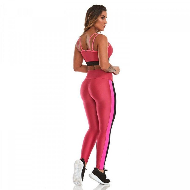 A peça ainda conta com detalhes em elástico na cor flúor que é uma das grandes apostas da coleção e elástico personalizado CAJUBRASIL, trazendo uma luxúria à peça.A legging é ideal para treinos de alto impacto, academias, corridas e atividades ao ar livre, por possuir proteção contra raios solares.