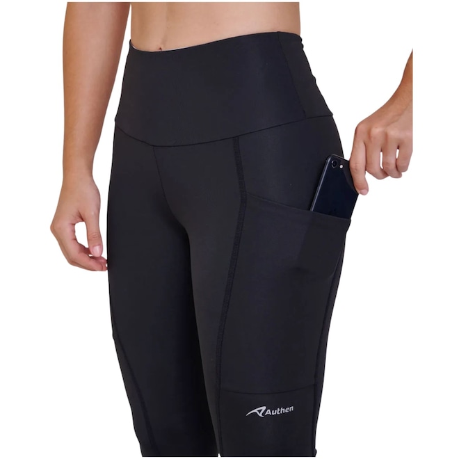 Modelagem Exclusiva Authen: Apresenta um cós anatômico que oferece suporte reforçado à região abdominal. Este design visa auxiliar na consciência postural, prevenindo o desgaste da coluna e protegendo a musculatura infra-abdominal. Além disso, assegura que a peça mantenha-se firme no lugar durante a corrida.