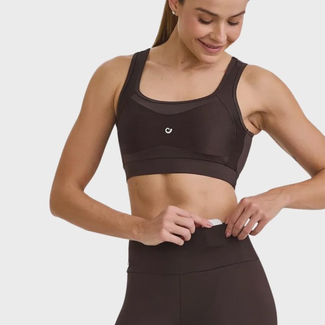 Legging Caju Brasil NY com Bolso no Cós confeccionada em tecido NY com proteção solar e boa cobertura. Possui bolso funcional no cós e detalhe em tecido com acabamento brilhante, oferecendo conforto e estilo para treinos e uso fitness no dia a dia.