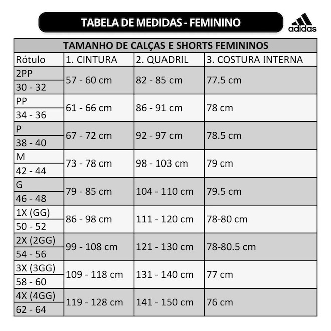 ElastanoGarantia do Fornecedor Contra Defeito de Fabricação Conteúdo da Embalagem 1 Calça SAC do Fornecedor ADIDAS: Brasil 0800 8 234 327 - Grande São Paulo (11) 2161 2961 Cós Elástico Cintura Média Quantidade de Bolsos 1 Tipo de Bolso Interno Modelagem Tight Fit