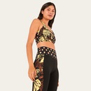 Possui cintura alta, cós elástico e sua estampa personalizada que garante ótimas composições.