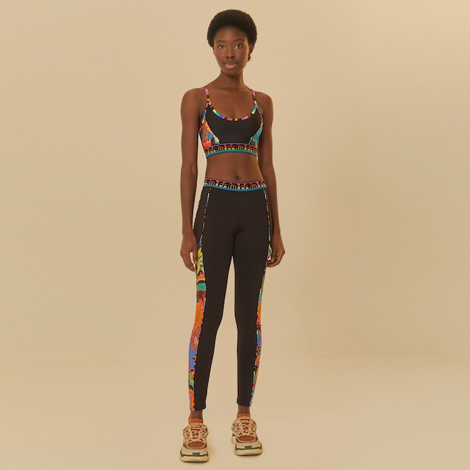 Eleve seu estilo esportivo com a Calça Legging Feminina Farm Recorte Onça Cool.