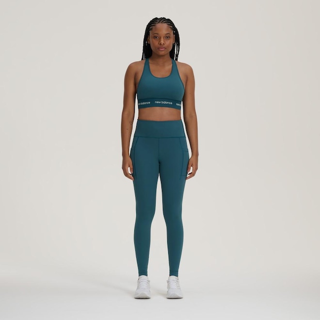 A Legging Feminina New Balance Sleek Pocket High Rise foi projetada para oferecer suporte a uma sessão de treino sem distrações. Oferece elasticidade e conforto durante treinos de alta intensidade. Logo NB cós central traseiro, bolsos laterais e cordão interno. Possuí a tecnologia NB Dry de absorção de umidade para ajudá-lo a se exercitar com tranquilidade.