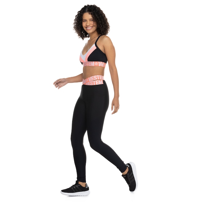 A calça legging feminina Vestem possui cós elástico e cintura média, o que possibilita um ótimo caimento.