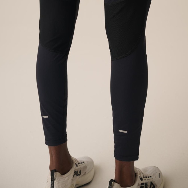 Calça Legging masculina confeccionada em poliamida biodegradável com elastano texturizada. Possui recortes anatômicos em mesh que proporcionam respirabilidade e um ajuste perfeito. O modelo possui costuras com zero atrito que contornam as curvas do corpo, bolsos laterais e bolso embutido no cós traseiro. E traz detalhes refletivos, como o logo FILA na coxa esquerda e as FILA Bars nas canelas traseiras.