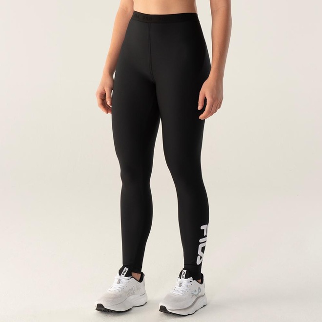 Legging feminina produzida em malha de poliéster com elastano, proporcionando flexibilidade e conforto para treinos. O modelo conta com a tecnologia FLOW, que melhora a respirabilidade do tecido, ajudando a eliminar o suor rapidamente e mantendo a temperatura do corpo. Além disso, oferece proteção solar fator 50 FPS+, bloqueando os raios UVA e UVB. Possui cós com elástico personalizado com FILA Letter e também aplicado na lateral esquerda inferior da peça.