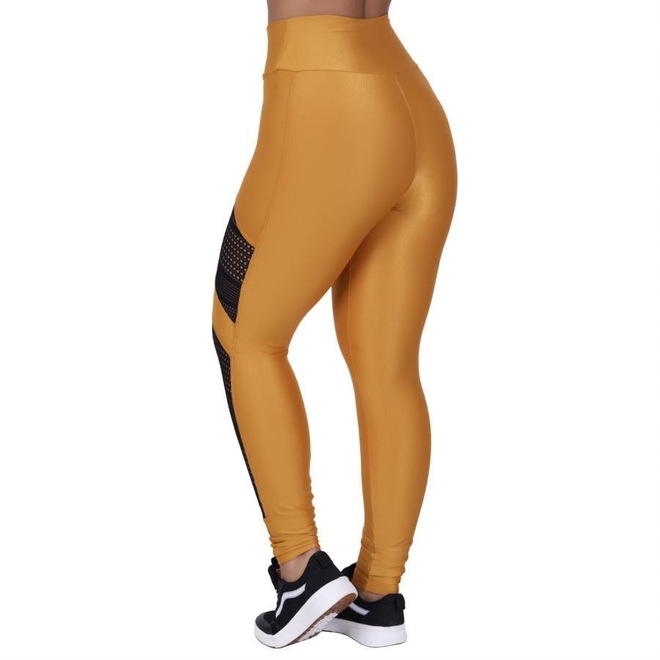 Calça Legging Orbis Fitness Wonder Poliamida Recortes em Tela - Feminina