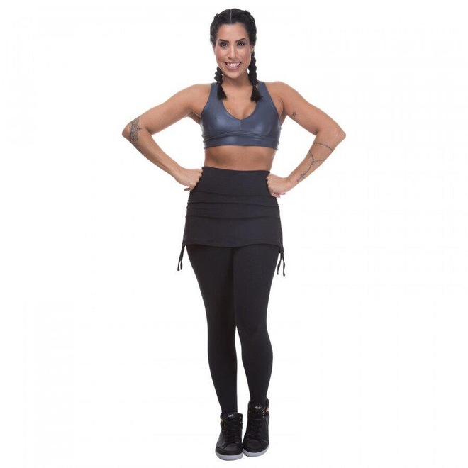 Calça legging feminina com cós alto e largo, leva saia sobreposta, proporcionando conforto e liberdade de movimentos, disfarça o quadril e também evita marcações na roupa.