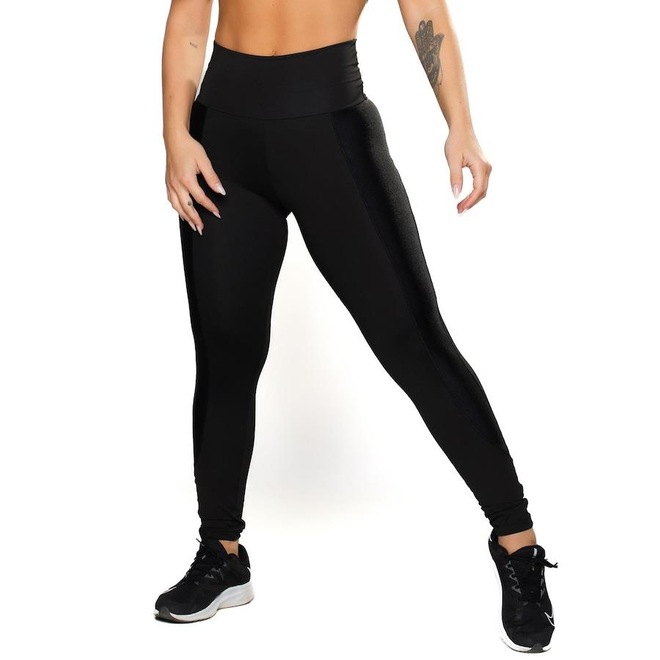 Calça Legging MVB Modas Montaria Faixa Brilhosa Cintura Alta - Feminina