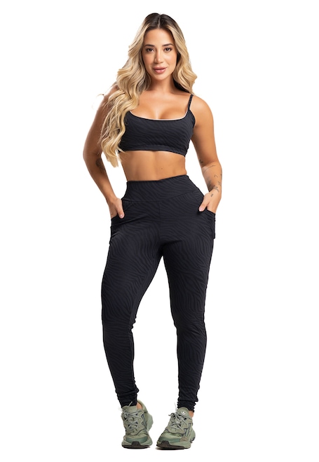 Calça Fitness Suplex de Jacquard com Bolsos Laterais – Conforto, Estilo e Praticidade
