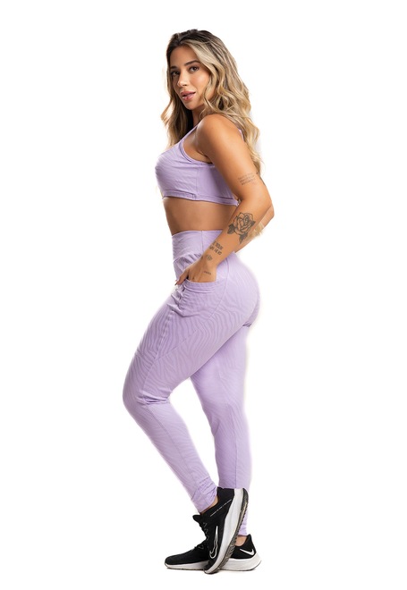 Calça Fitness Suplex de Jacquard com Bolsos Laterais – Conforto, Estilo e Praticidade