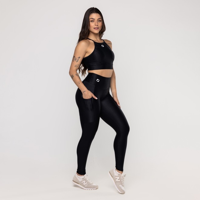 A calça possui uma cintura alta, sustentação e compressão, que modelam e delineiam curvas do corpo.