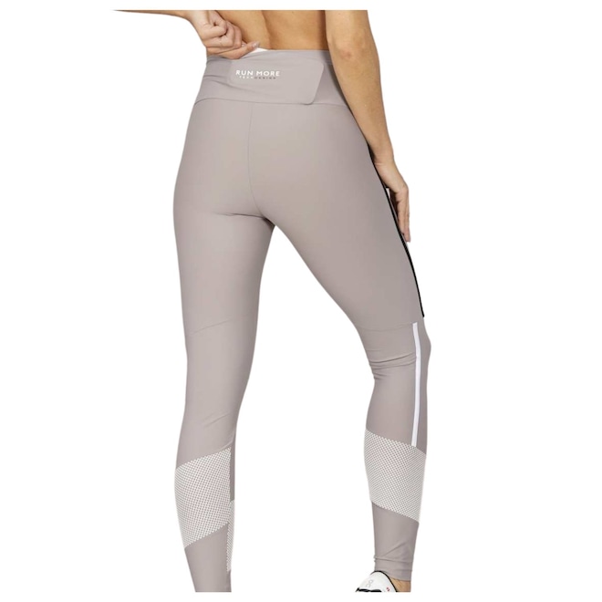 Calça legging com listras nas laterais que proporcionam um visual moderno e distinto. O recorte inferior se sobressai com um efeito 3D inspirado em tecido de tela digital, enquanto a marca Run More aplicada no cós traseiro confere um toque autêntico. Perfeita para quem busca se destacar com estilo e inovação durante os exercícios.