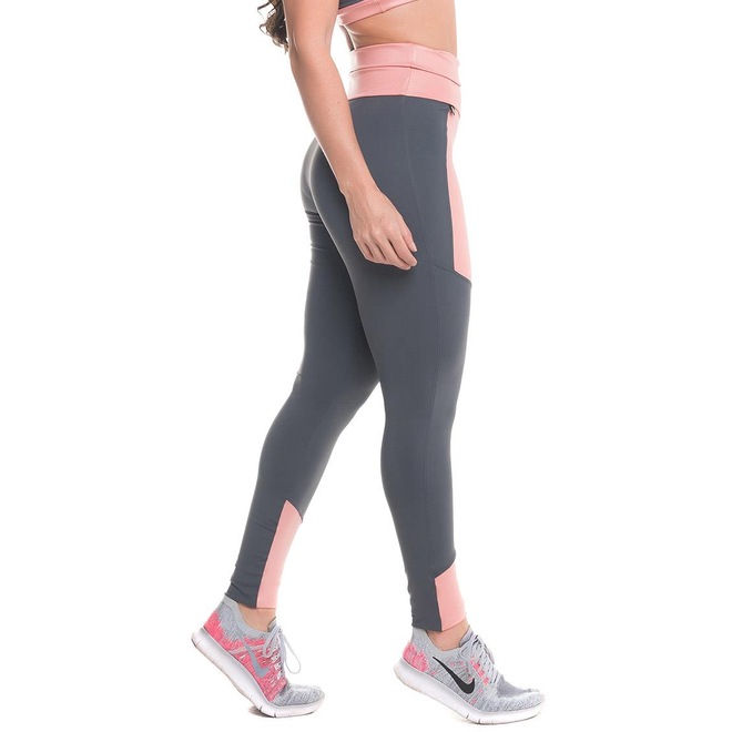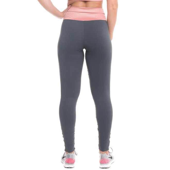 Legging em poliamida, Preto com detalhe em Cinza escuro, com fator de proteção solar UV50+, Garantia de 3 meses e contra defeito de fabricação.
