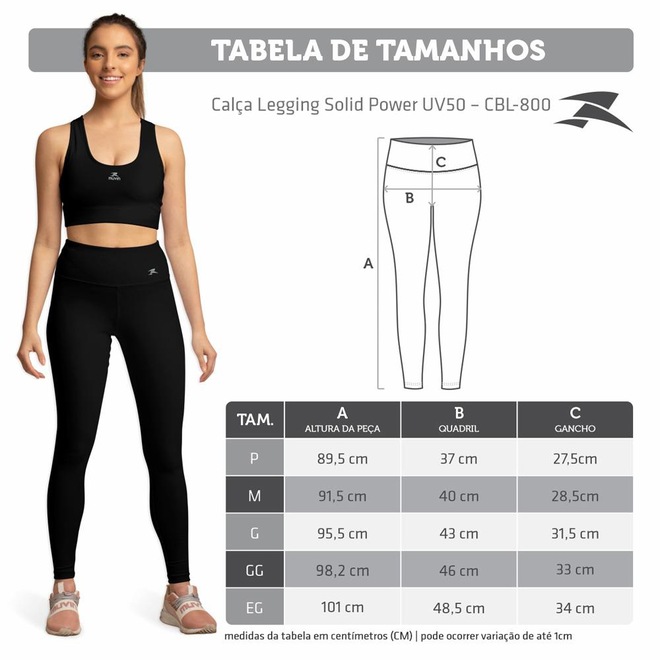 - A Calça Legging Solid Power é recomendada para atividades esportivas diversas, especialmente de fitness e running. - Confeccionado em tecido de gramatura superior e com elasticidade equilibrada para que haja uma boa sustentação, sem prejudicar os exercícios e não apresentar transparência durantes os movimentos. - Também possui boa respirabilidade e toque suave, que evita assaduras e não machuca a pele, além de contar com proteção FPS UV 50+. - Com modelagem simples e eficiente, não possui recortes e costuras em demasia, evitando assim atrito desnecessário com a pele. - Embalagem: Saco Plástico