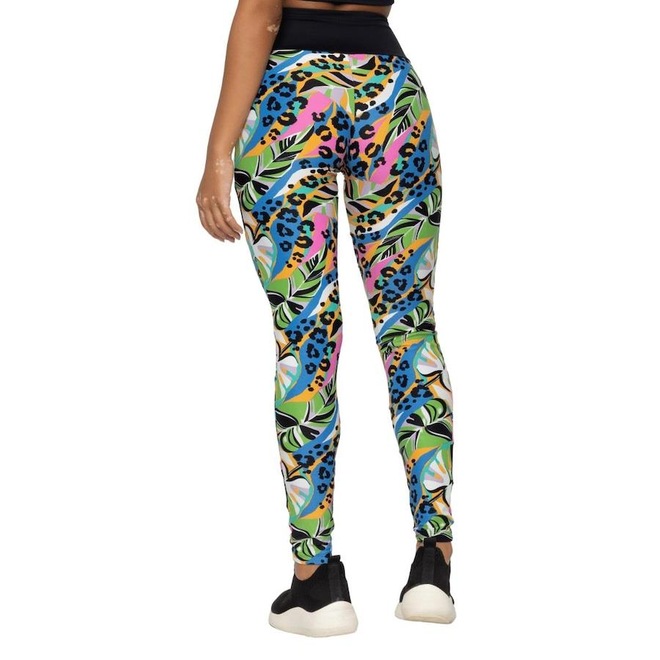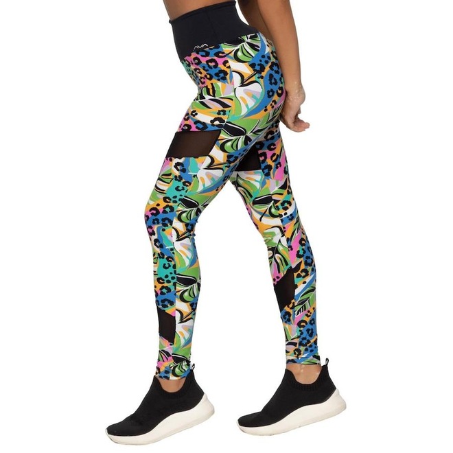 Calça Legging AVA Fitness Suplex Estampada com Detalhe em Tule - Feminina