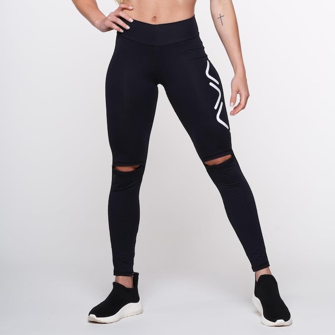 Calça Legging AVA Fitness Wear Suplex Poliamida Abertura no Joelho - Feminina