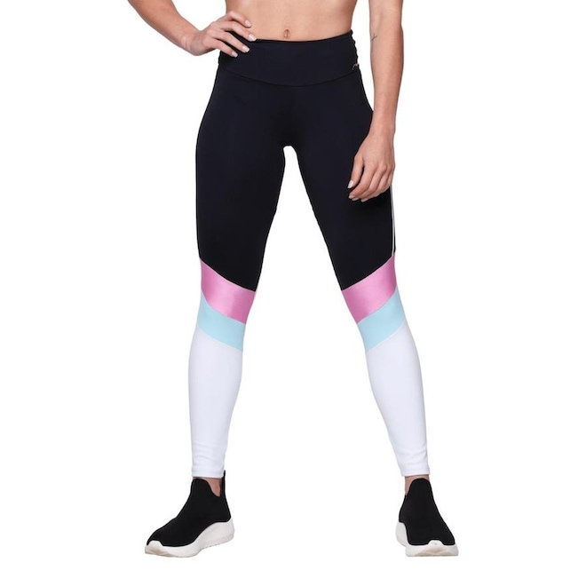 Legging fabricada em tecido poliamida de ótima compressão com recortes em tons de , bb e água. Modelagem que valoriza o corpo oferecendo conforto e segurança nos treinos ao ar livre.
