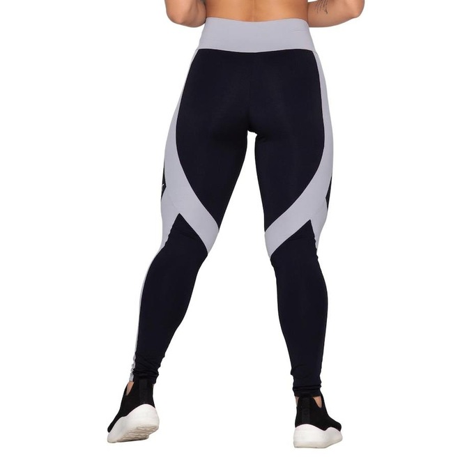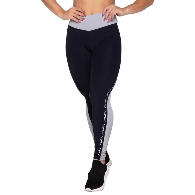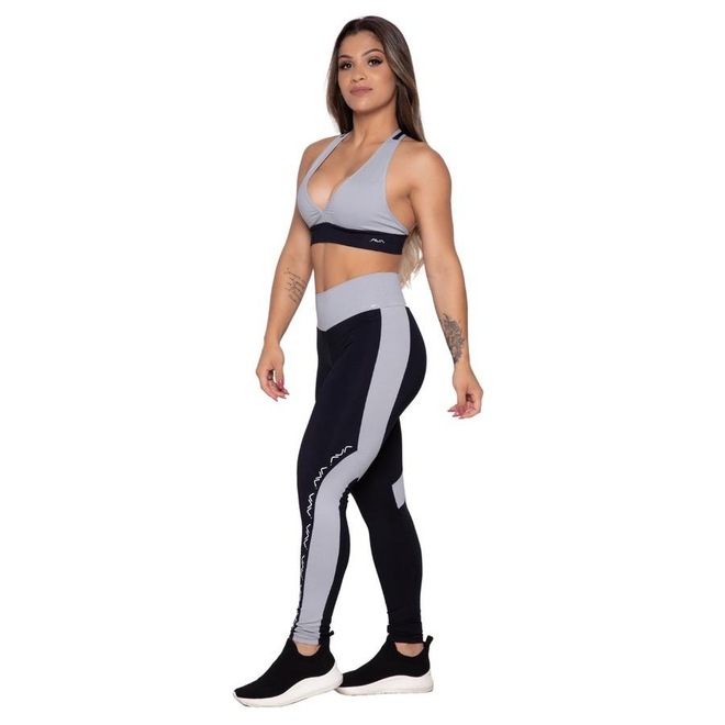 Calça Legging AVA Fitness Wear Suplex Preta com Recorte com Silk - Feminina