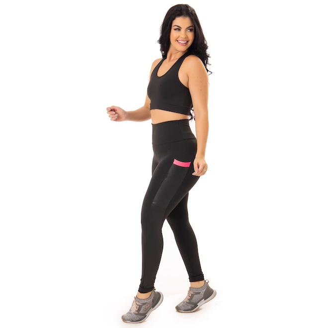 A Calça Legging Academia Bolso Reto é a escolha perfeita para quem busca conforto, estilo e desempenho em suas atividades físicas. Desenvolvida com tecido Suplex de alta qualidade, sua composição de 90% poliéster e 10% elastano garante um ajuste firme ao corpo, proporcionando liberdade de movimento sem abrir mão do conforto. A modelagem com cintura alta oferece excelente suporte abdominal e ajuda a valorizar a silhueta, enquanto o efeito "empina bumbum" confere um visual ainda mais bonito e esportivo.