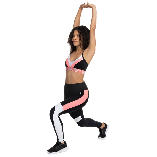 Já os recortes coloridos valorizam o visual para você arrasar no look esportivo feminino.