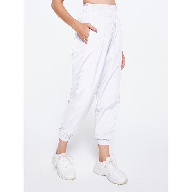 Calça lisa cós em elástico, possui cintura alta, bolsos laterais, recortes e punho na barra. Referência: 2623 Coleção: Dancing Tecido: Macitel Macitel: 100 % Poliamida. Tecido que oferece respirabilidade, conforto, leveza e secagem rápida. Indicação de uso: Em esportes em geral e no dia a dia compondo looks athleisure.