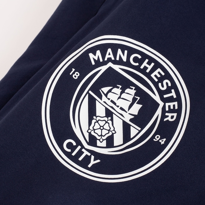 Com o emblema do Estádio Etihad e o logo PUMA em destaque, além de bolsos com zíper e cordão interno para ajuste personalizado, ela garante estilo e praticidade no dia a dia.