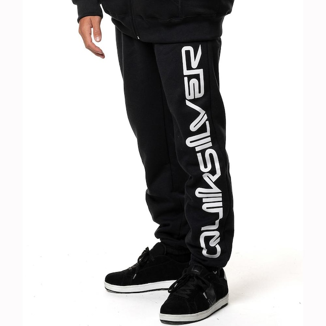 Calça QuikSilver moletom feita em modelagem regular fit, 280g, silk 1 cor na perna esquerda, etiqueta aplicada no bolso e cadarço roliço com ponteira de acetato transparente.