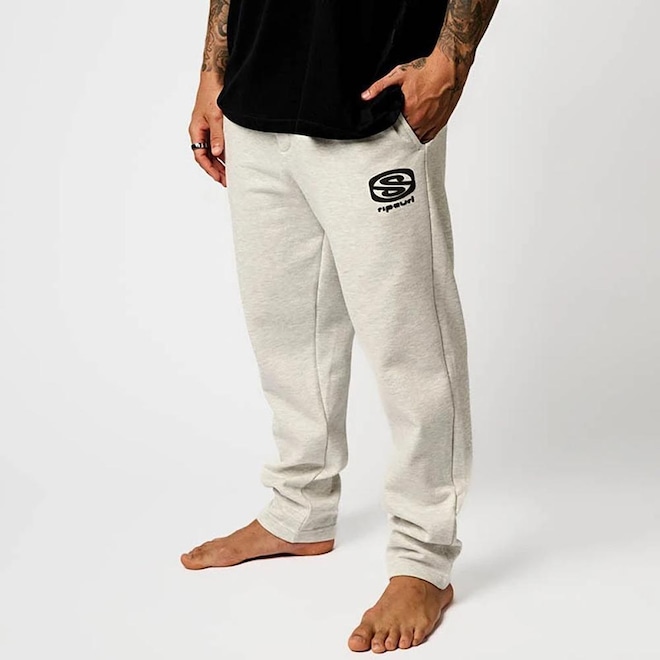 Calça Rip Curl com estampa puff frontal, moletom 360g, cós elástico com ajuste em cordão, bolsos laterais faca e bolso traseiro chapado.