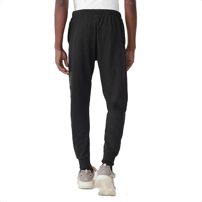 Calça masculina confeccionada em moletinho leve. Modelagem regular afunilada tipo jogger.