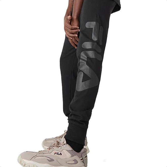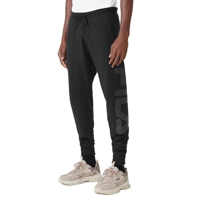 Possui cós em ribana com elástico interno e cordão ajustável, bolsos laterais, punho em ribana e maxi logo Fila Letter aplicado na lateral esquerda.