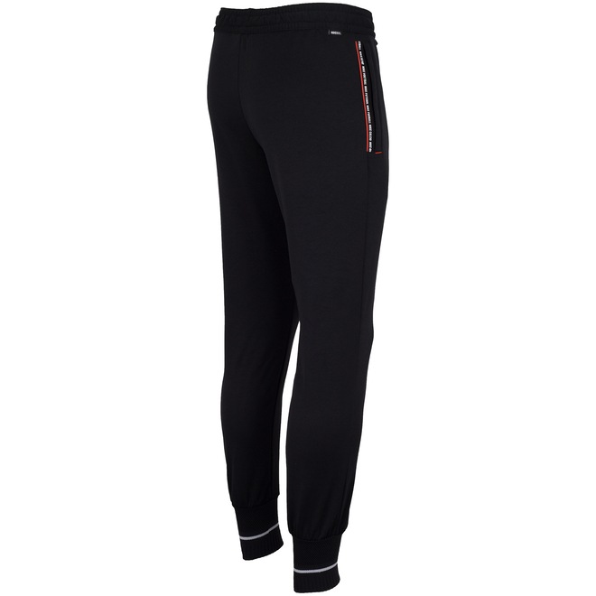 A calça possui barra elástica e canelada, com modelagem standard fit.