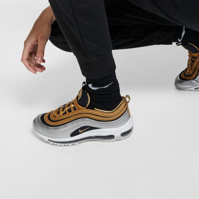 Um cós elástico com cordão permite ajustar o caimento, e os punhos com nervuras mostram seus tênis.