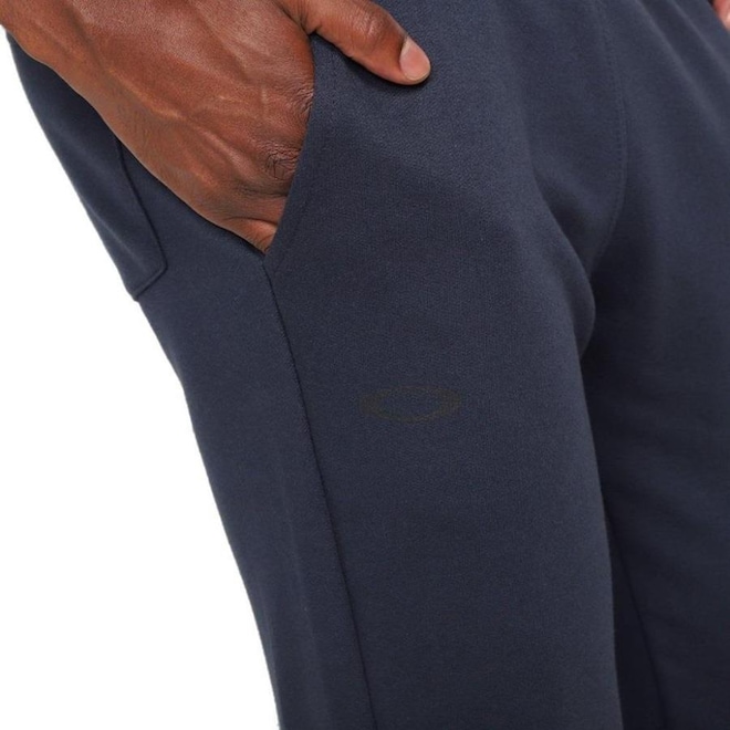Calça Oakley regular fit com fechamento em elástico e cordão, etiqueta Oakley emborrachada e costurada na perna esquerda frontal e bolso traseiro embutido.