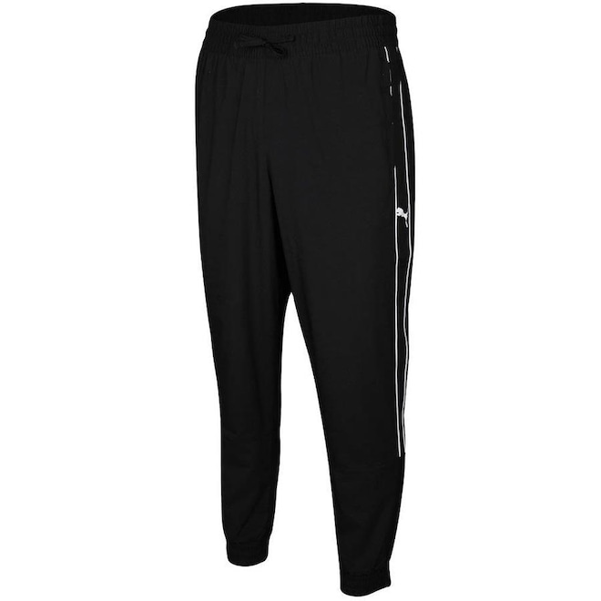 Com modelagem mais solta e leve, a Calça Puma Train Fav Woven Full Masculina é uma ótima opção para seu dia a dia e treinos. Conta com cós elástico, bolsos laterais e logo Puma estampada na perna. Além disso, conta com a tecnologia Drycell, que elimina a humidade do corpo lhe mantendo seco e confortável. Principais características da Calça Puma Train Fav Woven Full Masculina:Composição do tecido: 77% Algodão 18% PoliésterCós: Elástica em ribForro: NãoBolsos Laterais: Sim | Zíper: NãoLogo: Puma, aplicada perna esquerdaGênero: MasculinoIndicado para: Dia a diaOrigem: Importadoref: M12GFH