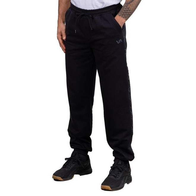- Sobre o produto - Calça de Moletom RVCA VA Taped - Masculina- CALÇA RVCA JEANS NEW DAWN MODERN STRAIGHT - Calça de moletom 240 gramas, com faixa lateral estampada sublimada logo RVCA, cordão de ajuste no cós, com bolsos frente e um bolsos traseiro, estampa logo silk na frente e no bolso traseiro e etiquetas personalizadas RVCA. - Características Principais: - Composição: 50% Algodão e 50% Poliéster.