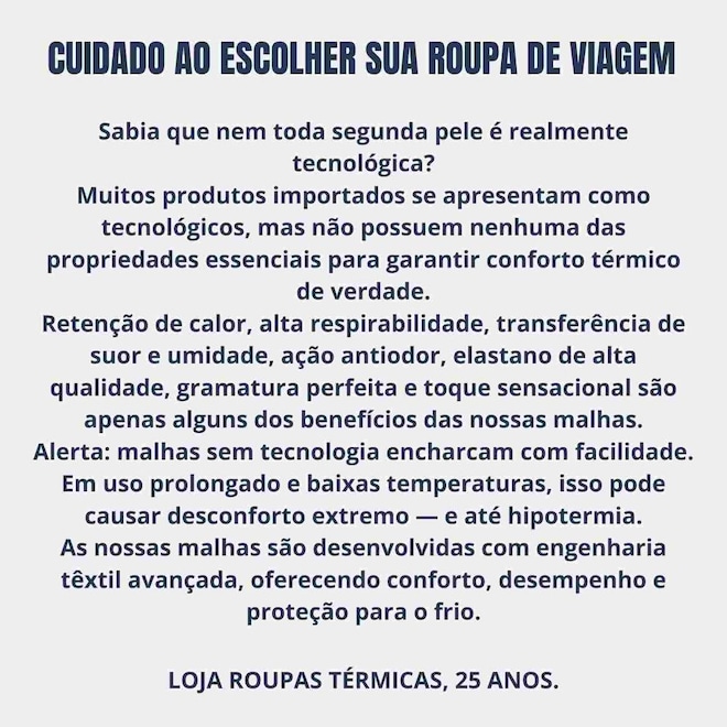 Esta calça não é importada, nem fabricada com malhas sem tecnologias de baixa gramatura. Nossa malha térmica é exclusiva com tecnologias de ponta.